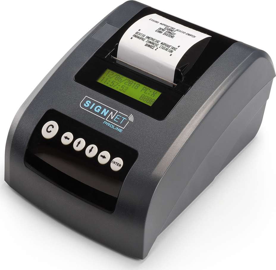 - Φορολογικό Μηχανισμό ( στην έκδοση on line ) βάρους 0,5 kg που διαθέτει οθόνη LCD , φορολογική μνήμη 16Μ , θερμικό εκτυπωτή 57 mm και εξαιρετικά γρήγορη ταχύτητα εκτύπωσης 70mm/s