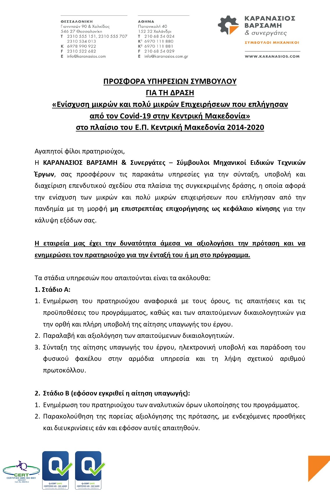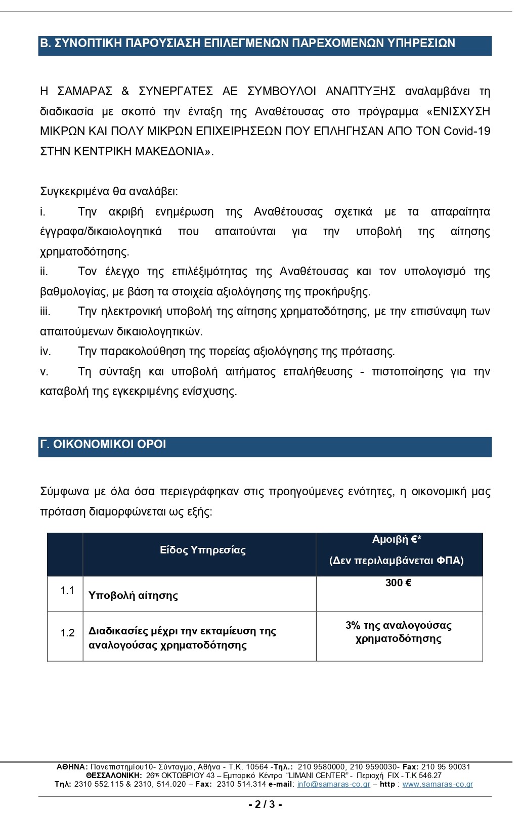 Προσφορές Γραφείων διεκπαιρέωσης διαδικασίας υποβολής δικαιολογητικών σχετικά με την επιχορήγηση της Περιφέρειας Κεντρικής Μακεδονίας