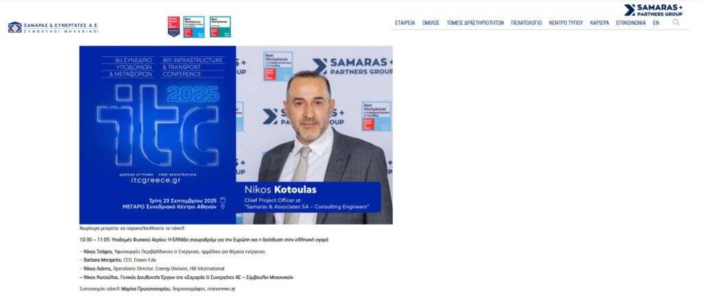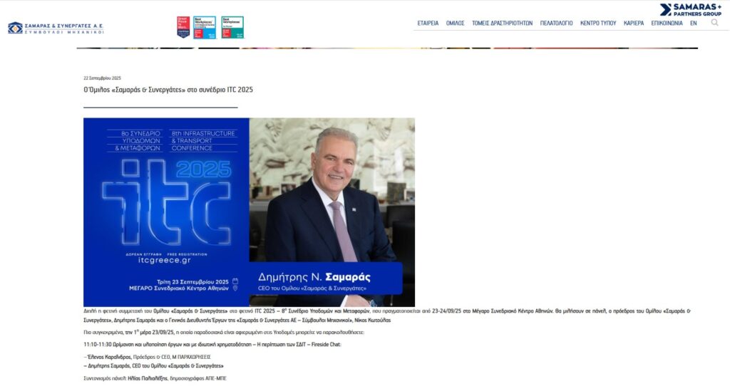 Ο Όμιλος «Σαμαράς & Συνεργάτες» στο συνέδριο ITC 2025 Διαφήμιση Για το αναλυτικό πρόγραμμα της ατζέντας και την εγγραφή σας στο συνέδριο μπορείτε να δείτε εδώ https://www.samaras-co.gr/