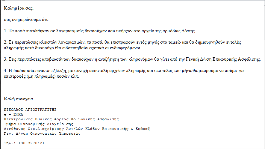 Πίστωση στους λογαριασμούς των πρατηριούχων το αναλογούν ποσό από το ετήσιο μέρισμα του 2012 από το τέως ΤΕΑΠΥΚ