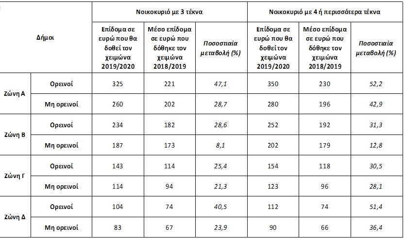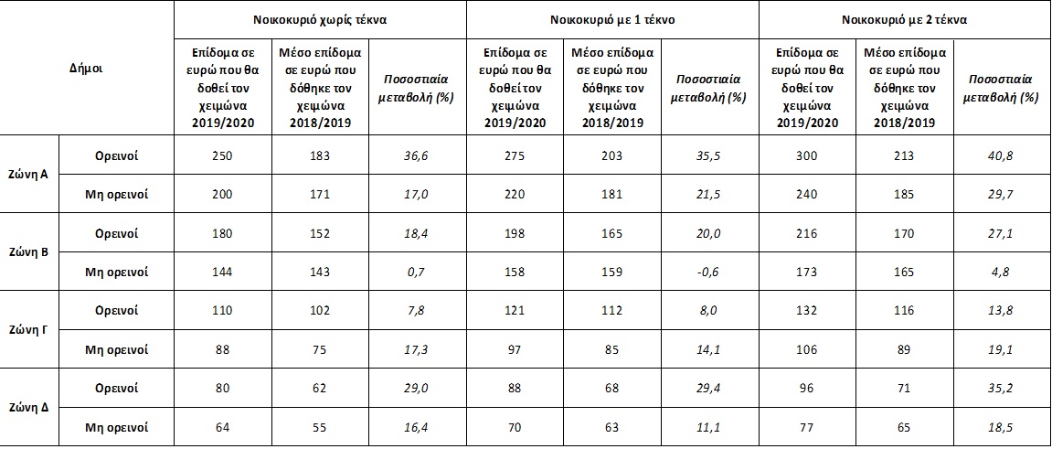 Σημειώνεται ότι το συνολικό δημοσιονομικό κόστος του επιδόματος αναμένεται να ανέλθει στα 68 εκατ. ευρώ, έναντι 57,5 εκατ. ευρώ που είχαν εγγραφεί στον προϋπολογισμό του 2019 και αναμενόταν ισόποσο ποσό να δοθεί το 2020
